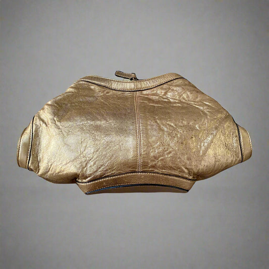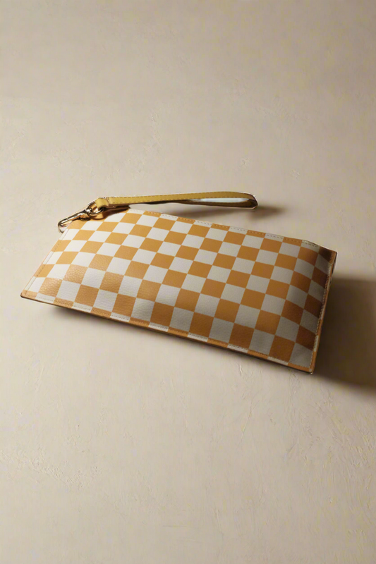 Tosca Brown & Beige Python Embossed Foldover Clutch