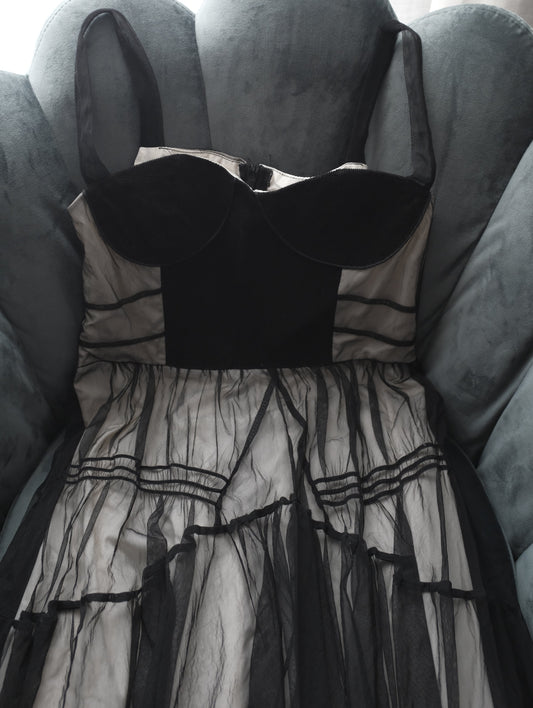 Sheer Black Tulle Corset Dress